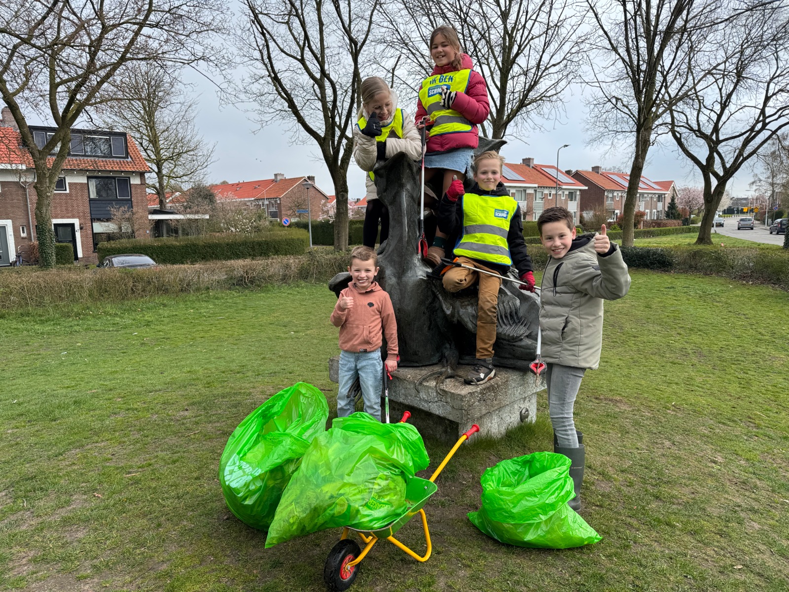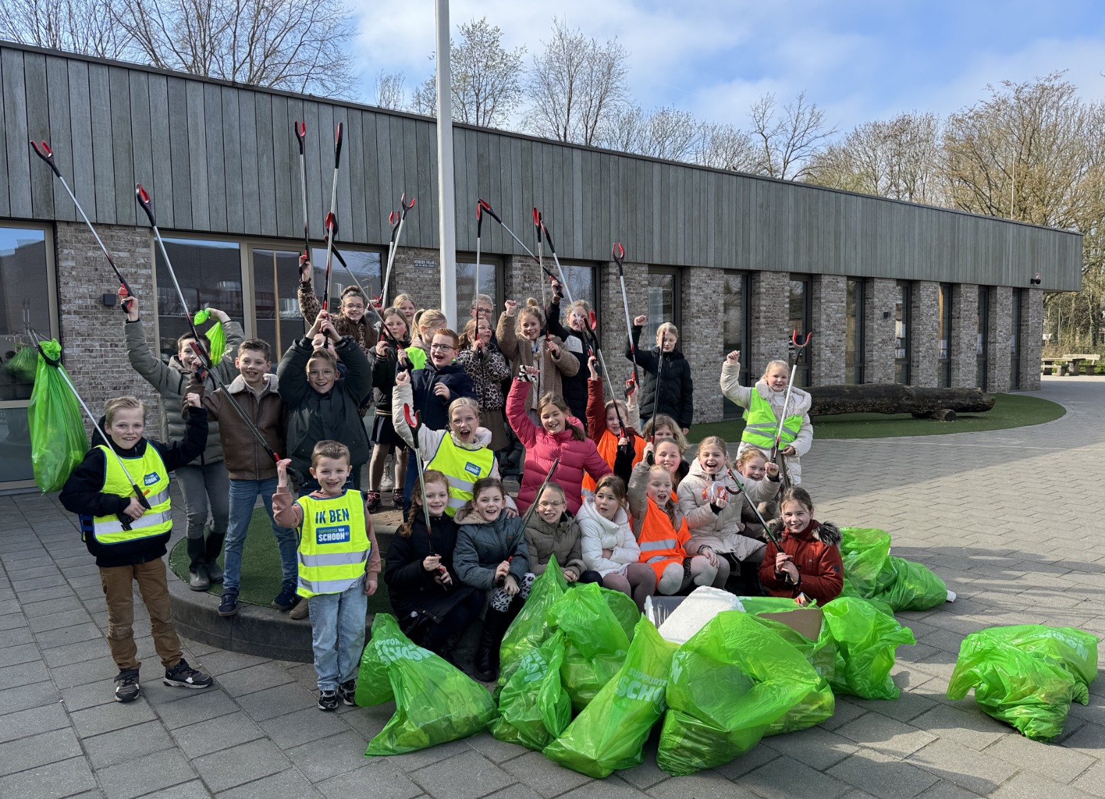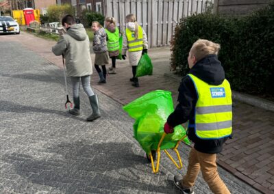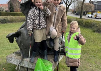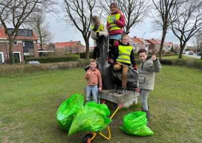 Voorzitter Jan Bouw had bij de ds. J. Fraanjeschool geïnformeerd of er leerlingen mee willen doen. Hij verteld: “Een leerkracht vertelde me vrijdag dat er mogelijk zo’n 15 leerlingen denken te komen. Wat schetst mijn verbazing: zaterdag staan er maar liefst ruim 30 leerlingen te popelen om te komen helpen. Geen probleem, alleen maar mooi zoveel enthousiasme. Anderhalf uur zijn de leerlingen de buurt in geweest en hebben minstens 10 zakken afval verzameld. Een prachtig resultaat! De buurt schoner en de kinderen bewuster gemaakt dat bijvoorbeeld plastic en ander afval niet vergaat en schadelijk is voor de natuur.”